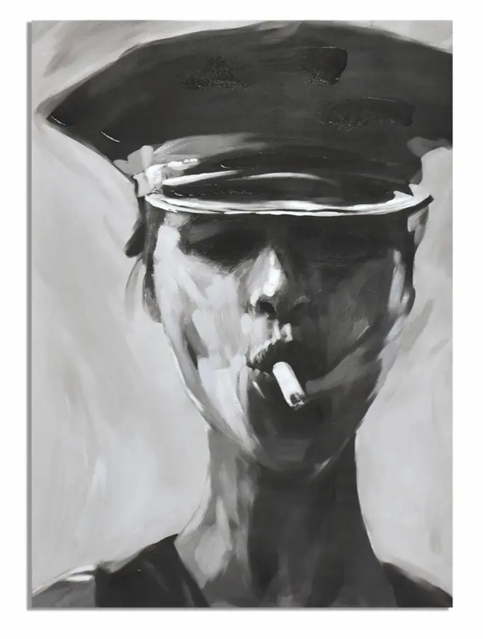Printed canvas artwork “woman” in black and white, 70x100 cm (50% oil).