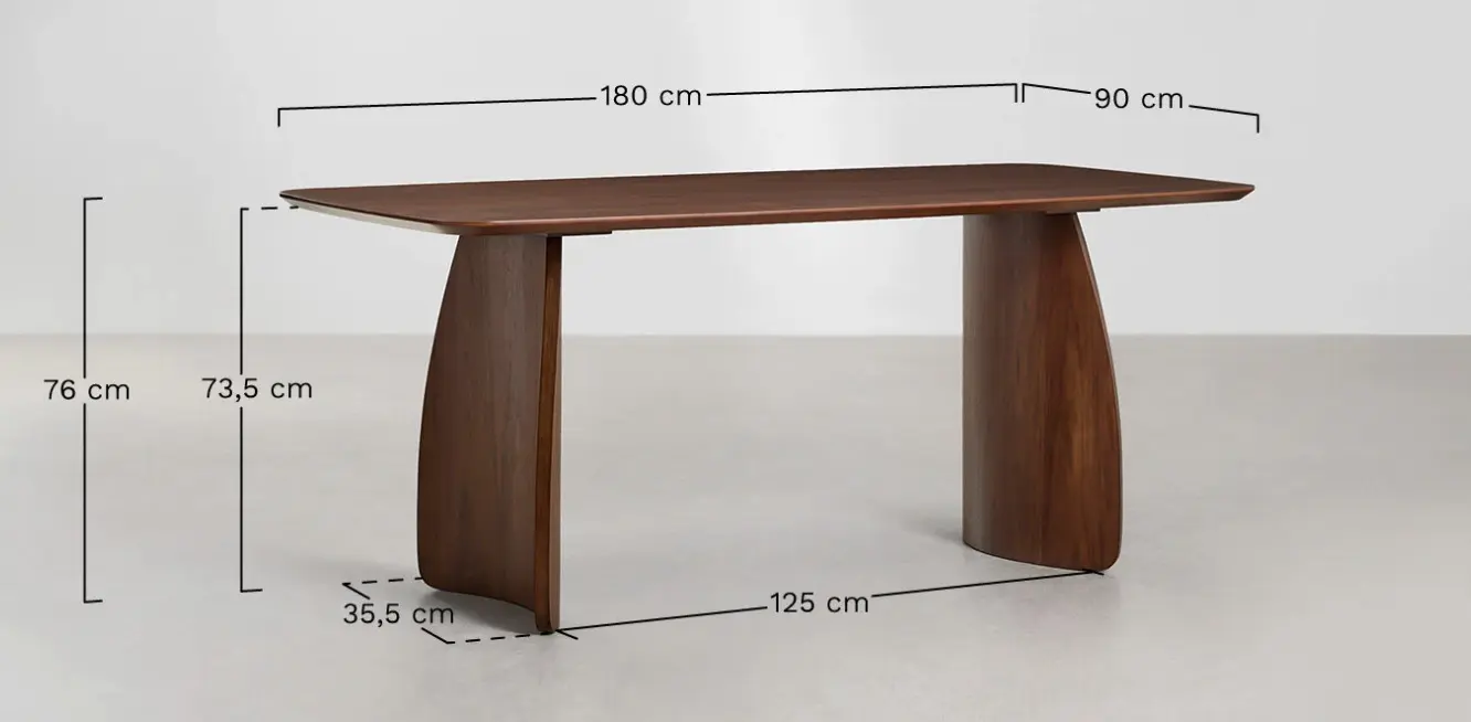 Rectangular dining table 180x90 cm in MDF with walnut veneer.
