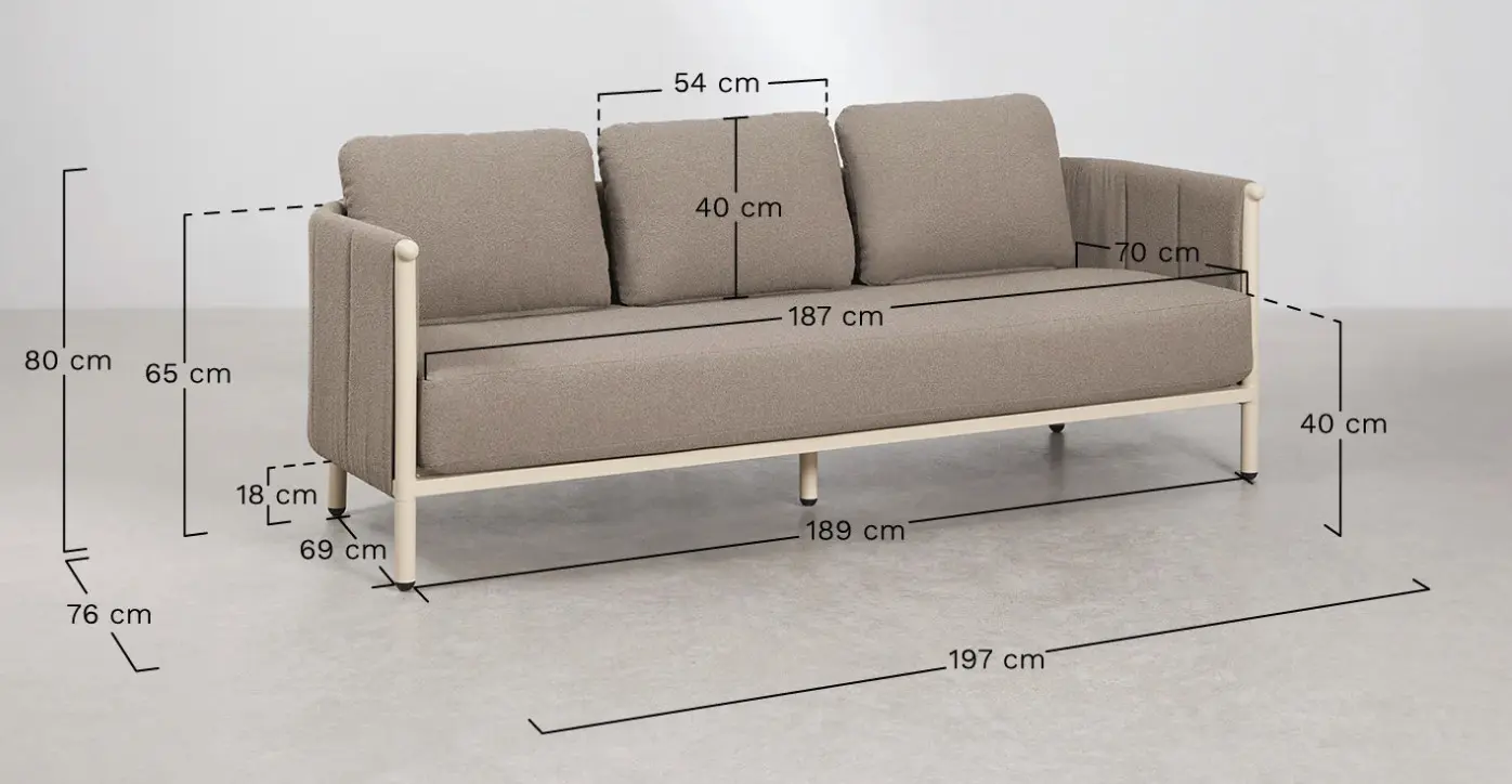 3-seater garden sofa in bouclé and aluminium