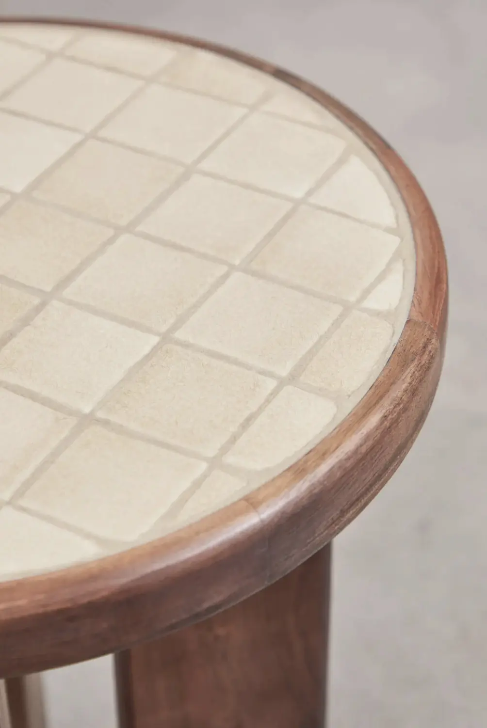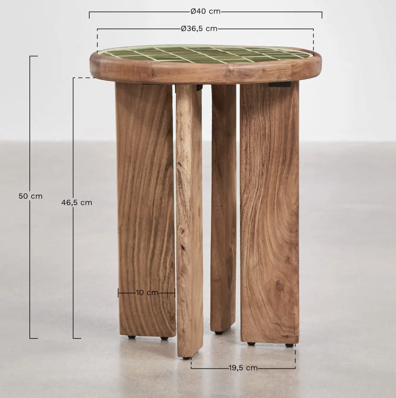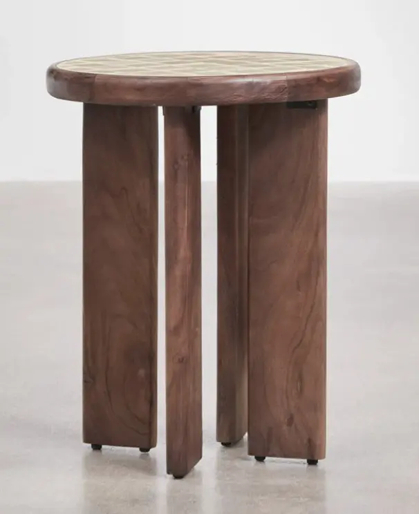 Round side table Ø40 cm in acacia wood and tiles.